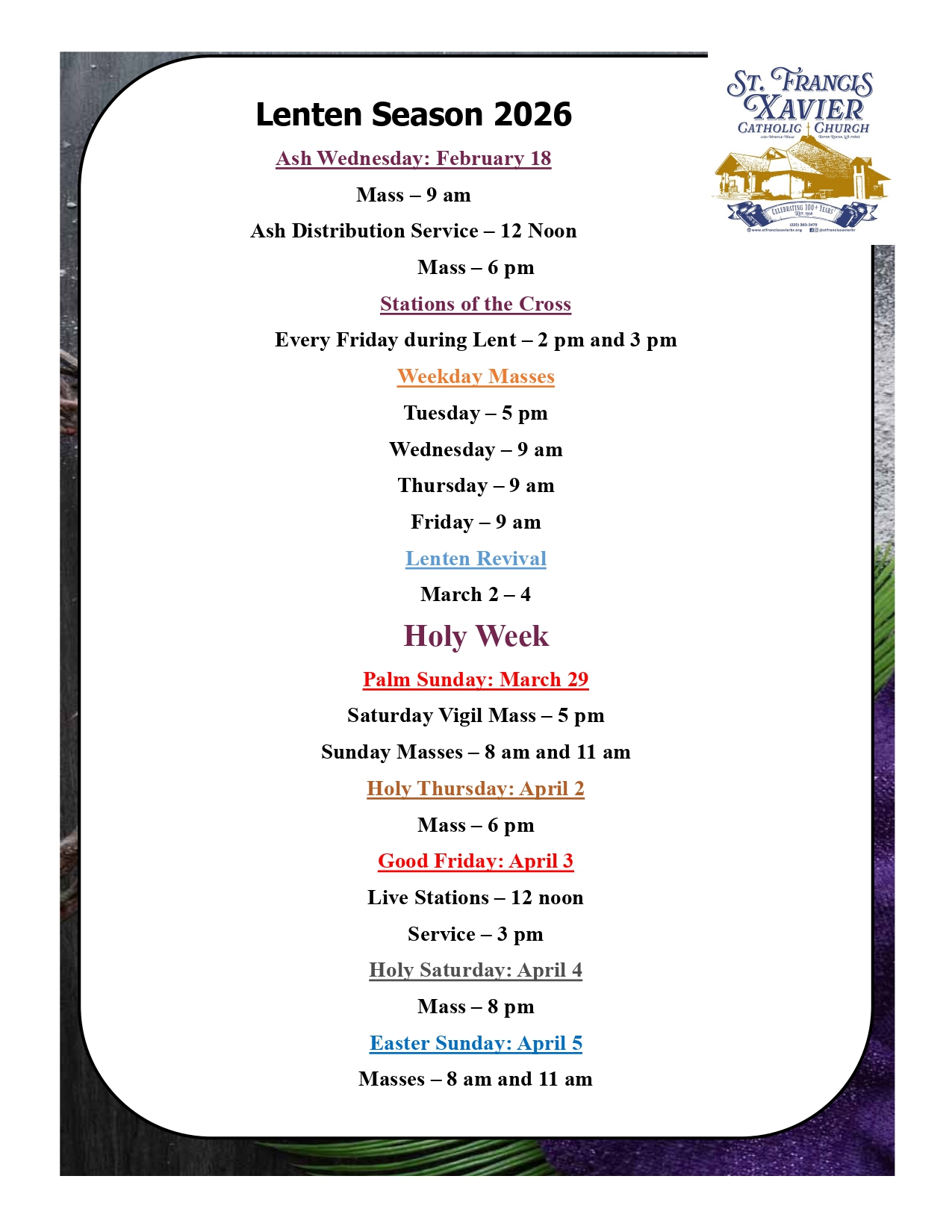Mass Schedule
